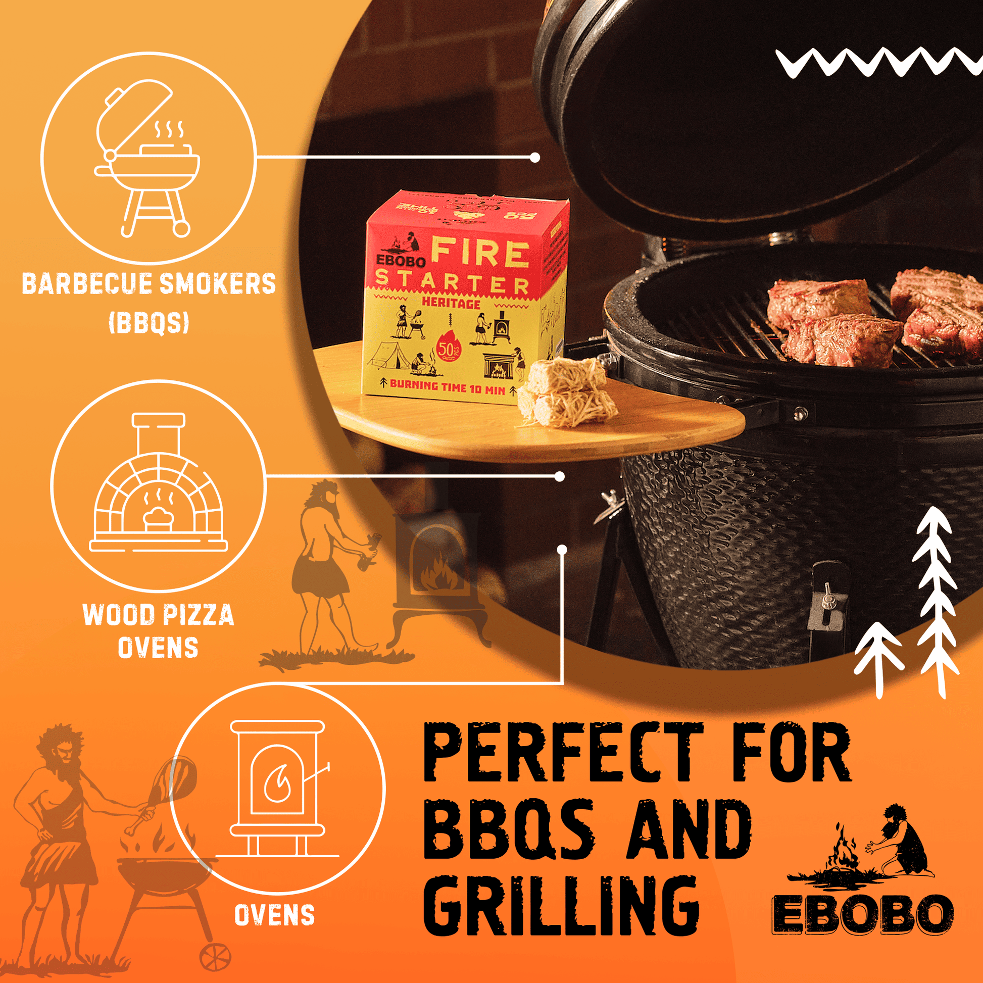 Start your fire effortlessly with EBOBO natural  fire starters made from wood wool and wax. These firelighters are ideal for fireplaces, BBQs, wood stoves, fire pits, and more. Simply light one and place it under your wood or charcoal – no need for lighter fluid or kindling. They burn cleanly, leave no chemical smell, and work reliably even in windy or damp conditions. A natural solution for everyday fire-starting needs.
